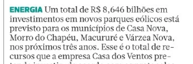 Empresa planeja investir mais de R$ 8 bilhões em parques eólicos em quatro municípios da Bahia
