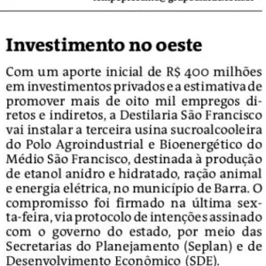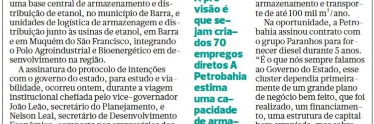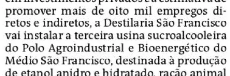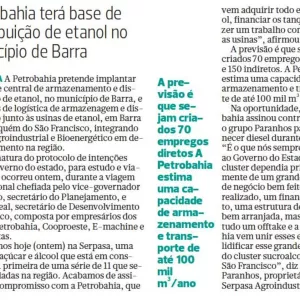 Petrobahia pode armazenar e distribuir etanol no Polo Agroindustrial do Médio São Francisco