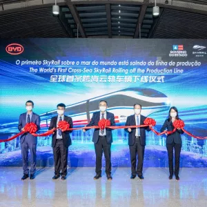 Primeiro trem do VLT do subúrbio está pronto e é apresentado na China, por videoconferência