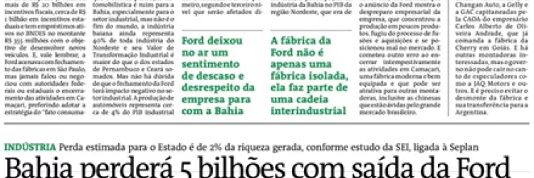 Bahia busca novos empreendimentos com fechamento da Ford