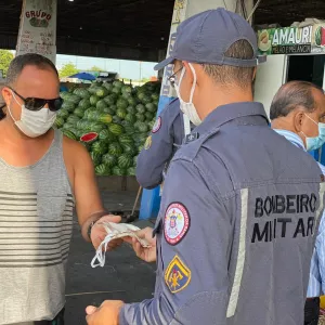 Corpo de Bombeiros distribui 4,5 mil máscaras no Ceasa e Mercado do Ogunjá