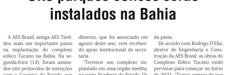 AES Brasil assina protocolos de intenções para implantação de oito parques eólicos na Bahia