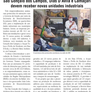 São Gonçalo dos Campos, Dias D'Ávila e Camaçari devem receber novas unidades industriais