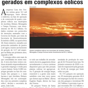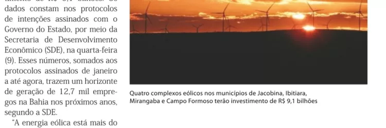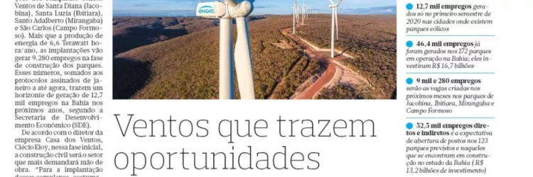 Casa dos Ventos deve gerar 9,3 mil empregos em quatro complexos eólicos na Bahia