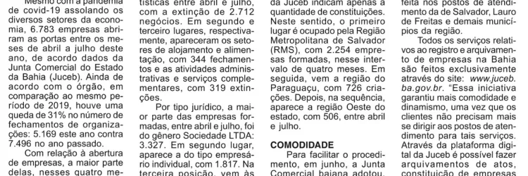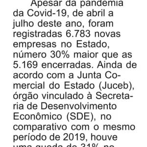 Juceb registra abertura de mais de 6,7 mil empresas entre abril e julho deste ano