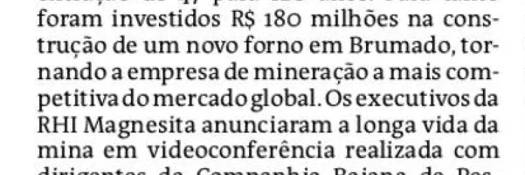 RHI Magnesita investe R$ 180 milhões em unidade de Brumado e vida útil da mina deve chegar a 120 anos