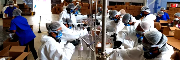 Álcool 70% envasado no Cimatec Park começa a ser entregue em unidades de saúde da Bahia