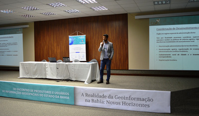 Iniciativas para a melhoria da Gestão Fundiária e Destinação das Terras Públicas Rurais e Devolutas no Estado da Bahia. Esse foi tema da palestra ministrada por Victor Fernandes, coordenador de Ação Fundiária, da Coordenação de Desenvolvimento Agrário (CDA), unidade da Secretaria de Desenvolvimento Rural (SDR), durante o VII Encontro de Produtores e Usuários de Informações Geoespaciais da Bahia - Geopública 2018. O evento aconteceu nesta terça-feira (06), no auditório da Secretaria de Infraestrutura (Seinfra), em Salvador.