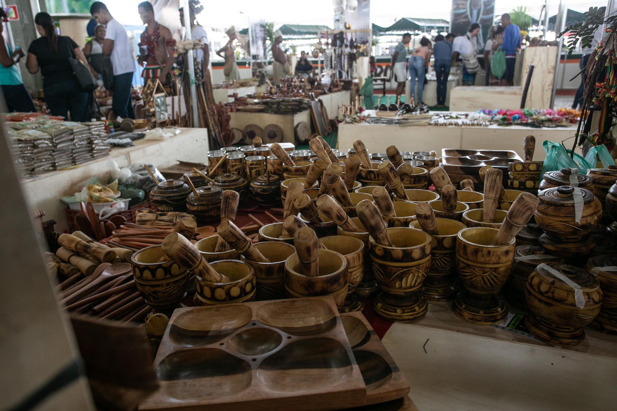 Moreia Pataxó, da tribo de Cora Vermelha, trouxe para a feira artesanatos com penas, sementes, cascas e madeiras: “Grande oportunidade de divulgar os produtos não só para Salvador, mas para todo o mundo. Ano passado, participamos da feira e vimos nossas vendas aumentarem. Este espaço é uma oportunidade de nos reunirmos com nossos parentes e trazermos um pouco da cultura indígena para Salvador”.