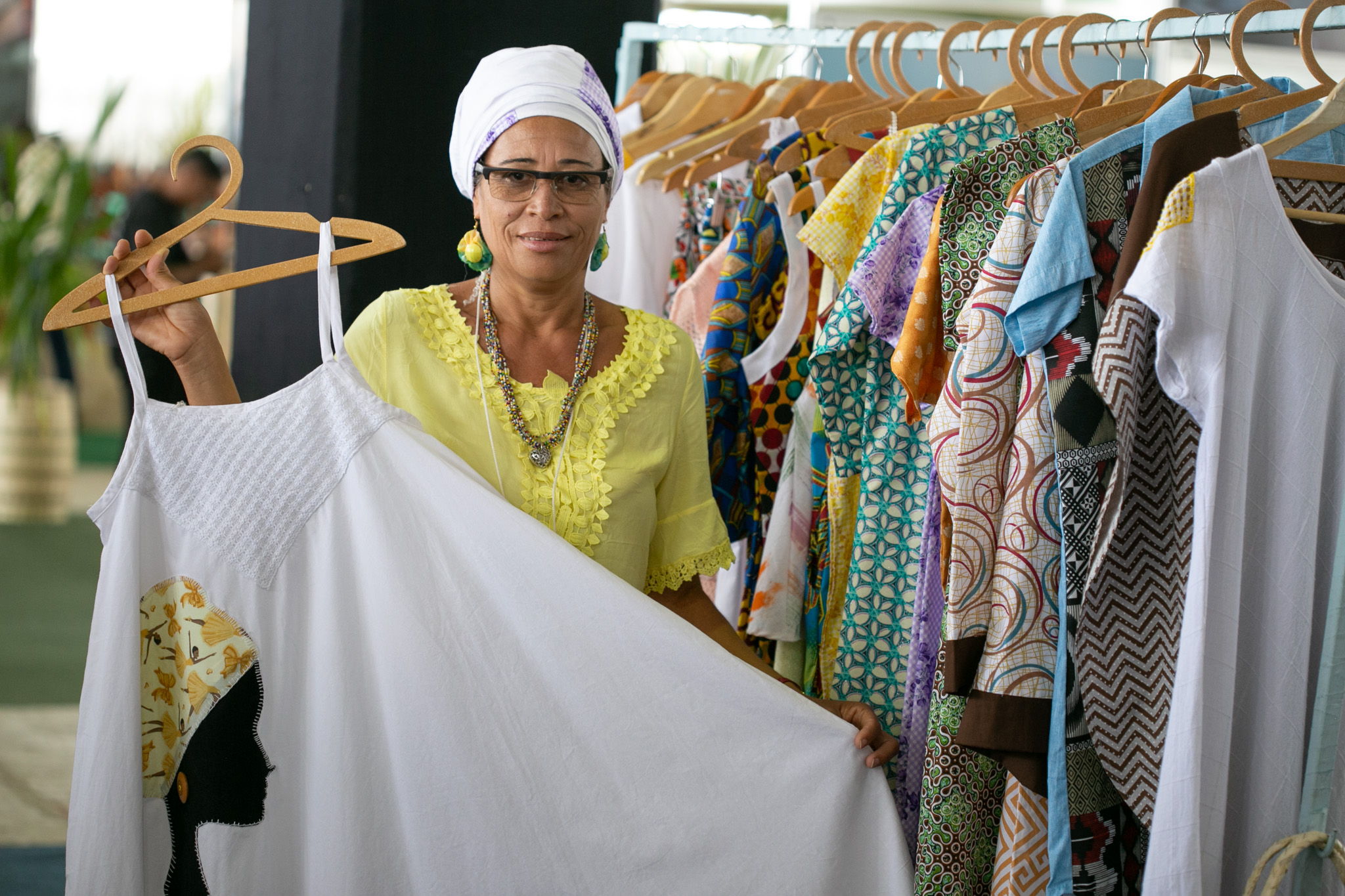 A mesma opinião tem Adrielle de Jesus Silva, da comunidade Quilombo do Kaonge, situado em Cachoeira, Território de Identidade Recôncavo. Presente na Feira da Agricultura Familiar e Economia Solidária da Bahia pela quarta vez, a comunidade trouxe, entre outros produtos, blusas, vestidos, bijuterias e panos de prato. Para Adrielle, “a feira tem sido muito proveitosa, porque engrandece os produtos, além de trazer oportunidades de parcerias de negócios, de participação em outras feiras e de valorização do povo. Pretendemos voltar porque é uma feira boa e nos empodera, afirmando nosso lugar no mundo”, conclui.