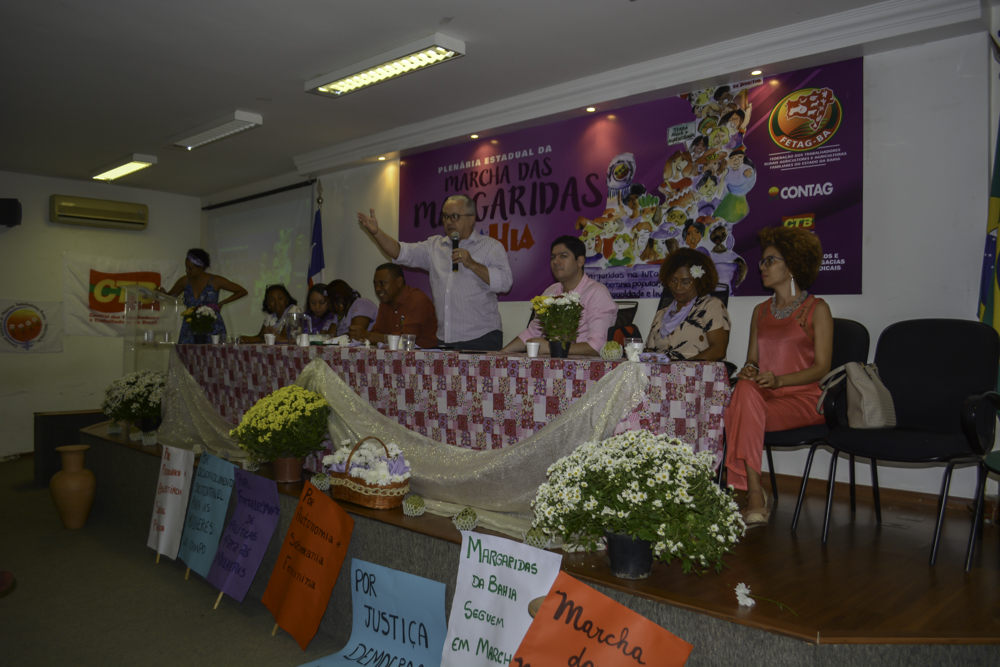 O presidente da Fetag-BA, João da Cruz, parabenizou às mulheres e homens presentes no evento e ao empenho da equipe da Fetag, na preparação dessa plenária, que irá debater o contexto das proposições direcionadas a Marcha das Margaridas 2019 que vai acontecer nos dias 13 e 14 de agosto em Brasília: “Serão apresentadas questões sobre políticas públicas da agricultura familiar, saúde das mulheres, e uma série de outras políticas voltadas para o desenvolvimento das nossas queridas mulheres da agricultura familiar, mulheres essas que hoje são maioria dentro do movimento sindical, do lado social dos filiados dos nossos sindicatos, inseridas nesse processo de empoderamento”.
