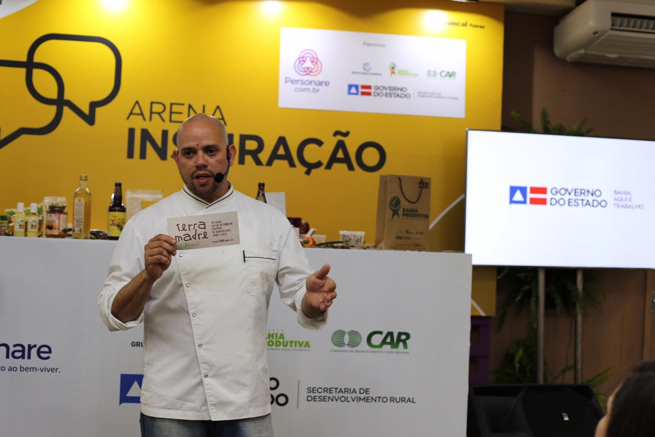 A produção da agricultura familiar baiana foi tema de palestra, nesta sexta-feira (08), na NaturalTech 2019, feira de alimentos sustentáveis, que acontece na capital paulista. Na Arena Inspiração, espaço de diálogo e interação entre o público e o palestrante, o chef baiano Fabrício Lemos e o apresentador do programa Chefs em Ação, Leonardo Roncon, ministraram palestra com o tema: O resgate da simplicidade nos sabores da Bahia além do dendê.