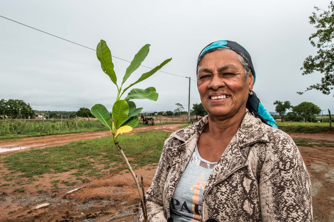 A agricultora Josefa do Carmo foi uma das beneficiadas com as mudas e comemora a entrega: “A gente investe na roça para a gente colher mais e para produzir mais. A seca acabou com tudo, mas agora temos a oportunidade de recuperar tudo de novo”.