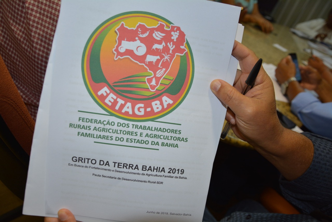 Grito da Terra Bahia 2019 – Em busca do fortalecimento e desenvolvimento da agricultura familiar da Bahia. Esse é o tema do encontro que reuniu representantes da Secretaria de Desenvolvimento Rural (SDR) e da Federação dos Trabalhadores Rurais Agricultores e Agricultoras Familiares do Estado da Bahia (Fetag-BA), nesta terça-feira (11), na sede da SDR, no Centro Administrativo da Bahia, em Salvador.