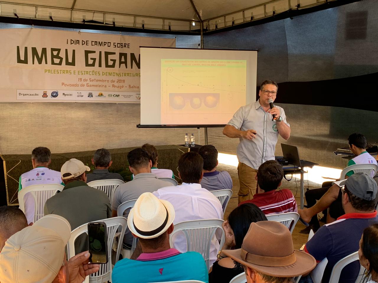 Umbu: Tecnologia de Produção e sua Importância para o Semiárido e Perspectivas de Mercado do Umbu Gigante foram temas debatidos durante o Dia de Campo sobre Umbu Gigante, realizado no Povoado da Gameleira, município de Anagé, Território de Identidade Sudoeste Baiano.