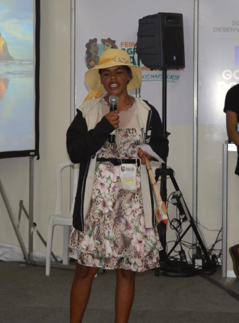 Delma Teodora da Silva, da comunidade Paucí, município Campo Formoso, reconhece a importância da Ater para melhoria da sua produção: "Estamos mostrando para os colegas nossa realidade de vida no campo. Lá desenvolvemos um projeto com hortaliças. A chegada da Ater facilitou muito nosso trabalho, melhoramos nosso fazer com as orientações que recebemos. A planta não estava saindo muito boa, o técnico chegou, orientou a gente e hoje