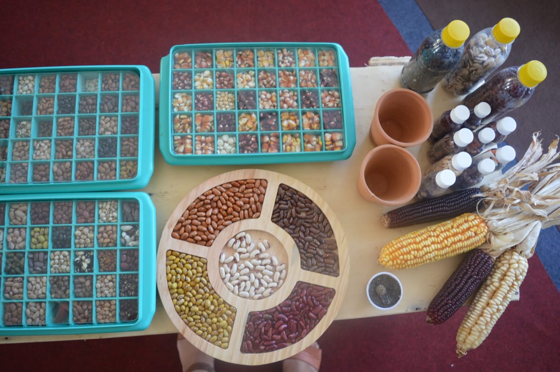 As sementes crioulas estão sendo demonstradas por meio de uma réplica do funcionamento de uma Casa de Sementes onde os agricultores familiares, chamados de guardiões, demonstram a prática de como são conservadas e armazenadas as sementes nas comunidades rurais.