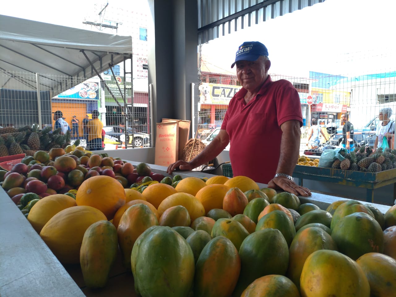 Antônio Conceição agora conta com uma bancada de cimento para vender sua variedade de frutas: "A gente trabalhava debaixo de toldo, mas era ruim no sol e na chuva. Quando chovia muito alagava, a água arrastava mercadoria e não tinha saneamento. Agora estamos bem acomodados".