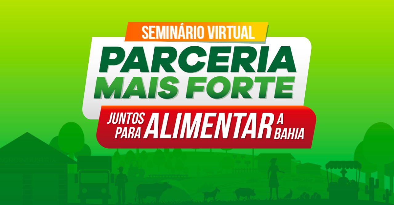 Confira a programação do Seminário Virtual: Parceria Mais Forte, Juntos para Alimentar a Bahia no site www.sdr.ba.gov.br e no www.car.ba.gov.br.