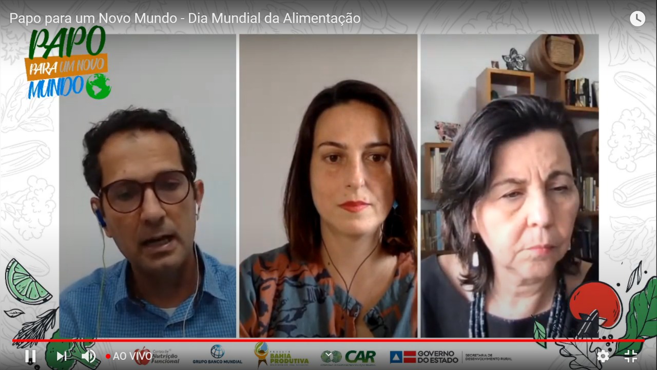 Em comemoração ao Dia Mundial da Alimentação, celebrado no dia 16 de outubro, foi iniciada, nesta quarta-feira (14), a edição especial do Papo para um Novo Mundo, promovido pelo Governo do Estado, por meio da Companhia de Desenvolvimento e Ação Regional (CAR), empresa pública vinculada à Secretaria de Desenvolvimento Rural (SDR), no âmbito do projeto Bahia Produtiva. A ação acontece em parceria com a VP Centro de Nutrição Funcional até a próxima sexta-feira (16), às 14h, com transmissão ao vivo pelo Canal SDRBahia no Youtube.
