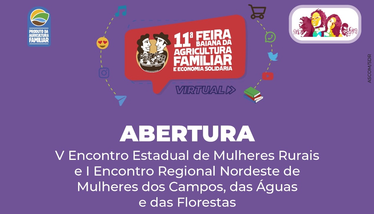 A5ª edição do Encontro Estadual de Mulheres Rurais e o I Encontro Regional Nordeste de Mulheres dos Campos, das Águas e das Florestas, irão abrir a programação técnica da 11ª Feira Baiana da Agricultura Familiar e Economia Solidária, que começa neste sábado (05), no formato virtual e gratuita, no site www.feiradaagriculturafamiliar.com.br, e com transmissão ao vivo pelo canal SDRBahia, no Youtube.