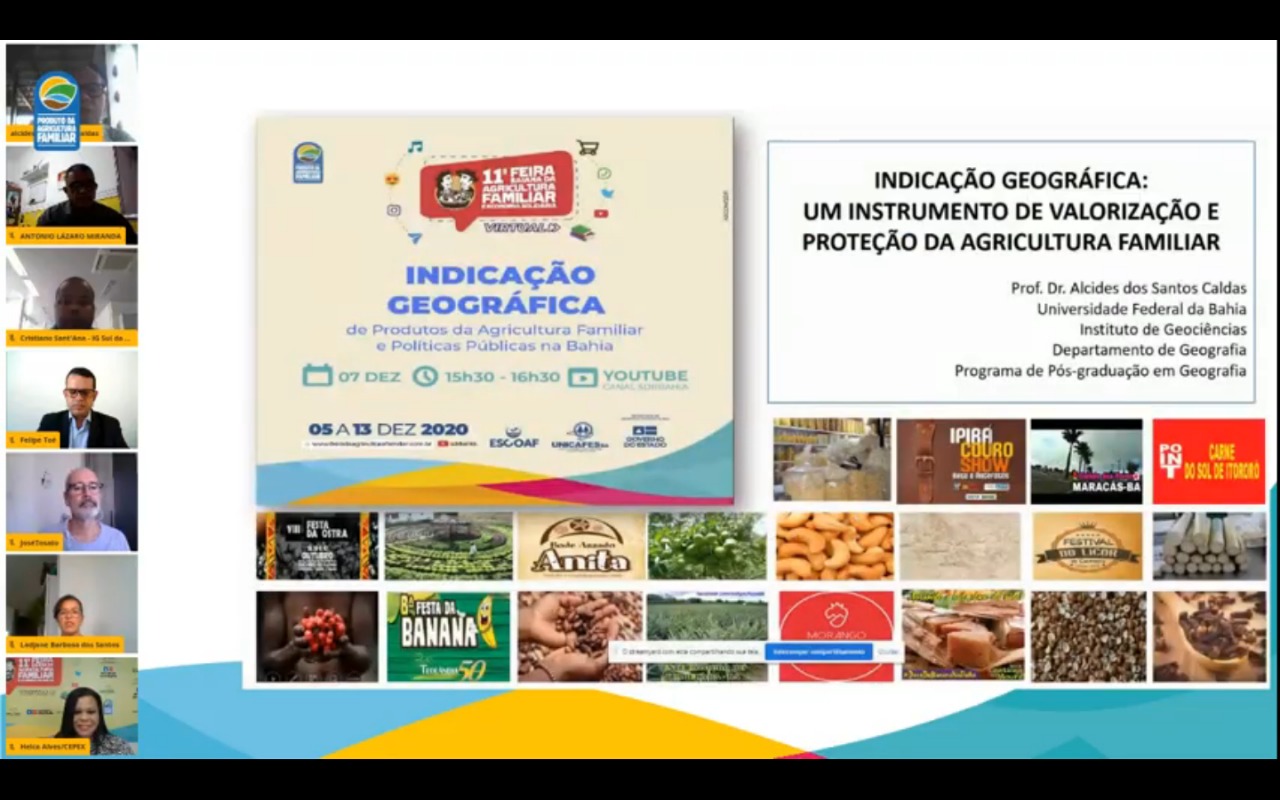 Identificação Geográfica (IG) de produtos da Agricultura Familiar: Caminhos Percorridos e Desafios foi o tema do encontro virtual realizado, nesta segunda-feira (07), pela Coordenação de Pesquisa Inovação e Extensão Tecnológica (Cepex), unidade da Secretaria de Desenvolvimento Rural (SDR).