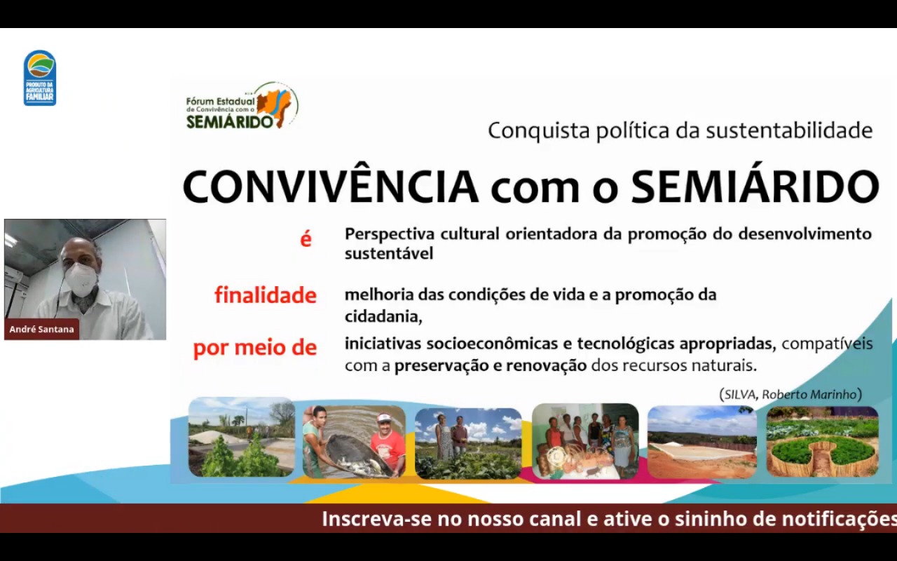 Foi realizado, nesta sexta-feira (11), o webinário Caatinga Forte: Plano de convivência com o semiárido, estratégias, ações governamentais, segurança alimentar e nutricional dos rebanhos, sistemas produtivos e manejo animal na Caatinga. O evento aconteceu durante a 11ª Feira Baiana da Agricultura Familiar e Economia Solidária, que segue até o este domingo (13), 100% on-line e gratuita, no site www.feiradaagriculturafamiliar.com.br.