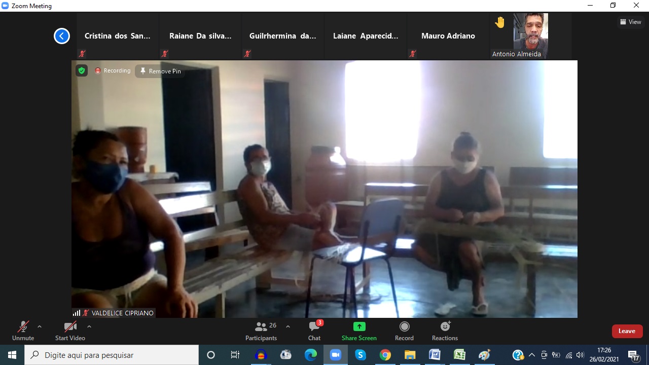 Participaram do encontro representantes de grupos de artesãs/aos das comunidades de Jiboia e São João, município de Antonio Gonçalves; comunidades de Salgado e Surara em Andorinha; e Jacunã, do município de Jaguarari. O trabalho artesanal desses grupos envolve a manufatura com matérias-primas como palha de ariri, barro, cipó e couro.