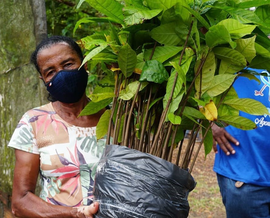 Em Una, no Litoral Sul, foram entregues 10.500 mudas de cacau e abacaxi. Agricultores familiares do Quilombo do Danda, em Simões Filho, na região Metropolitana de Salvador, receberam 8.550 mudas de abacaxi imperial, mandioca, cajazeira, ipê amarelo, mogno africano e olho-de-pavão. Para os agricultores do Instituto Ecobahia, em Pau Brasil, no Litoral Sul, foram distribuídas 20 mil mudas de mandioca. E os cooperados da Cooperativa de Serviços Sustentáveis da Bahia (Coopessba), em Ilhéus, também no Litoral Sul, receberam 11.700 mudas de cacau seminal.