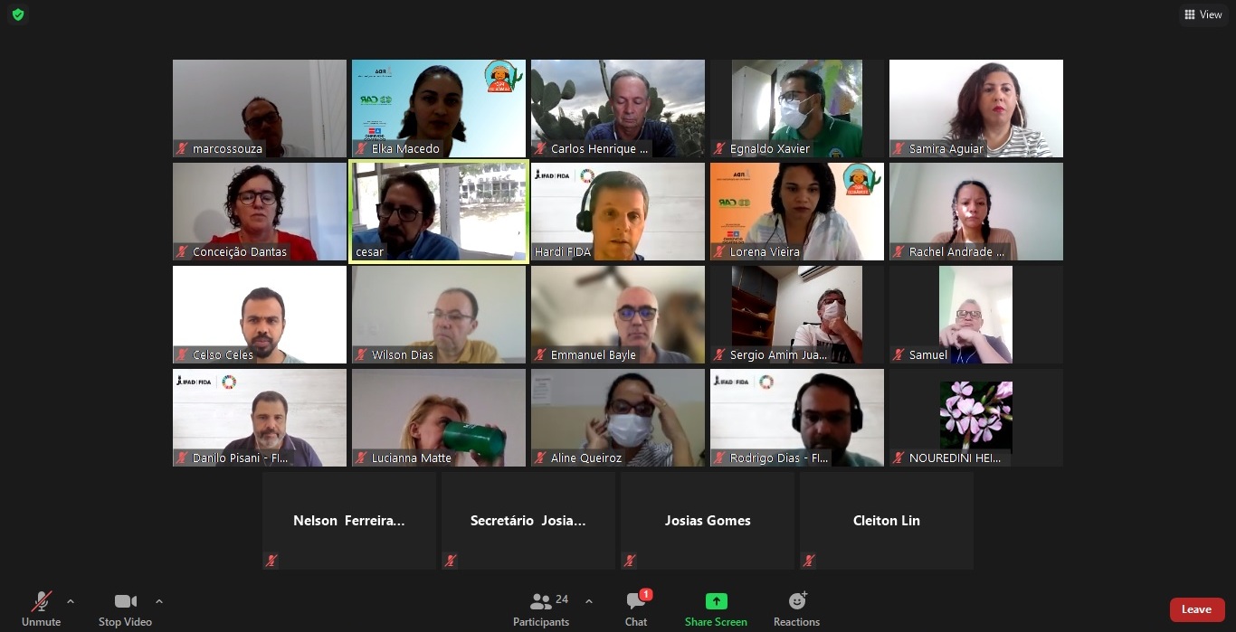 A assinatura do memorando com os encaminhamentos e acordos acerca das diversas ações do projeto do Governo do Estado, Pró-Semiárido, marcou o encerramento da missão de apoio do Fundo Internacional de Desenvolvimento Agrícola (Fida), cofinanciador do projeto. O evento virtual contou com a presença do Secretário de Desenvolvimento Rural, Josias Gomes, do diretor-presidente da Companhia de Desenvolvimento e Ação Regional (CAR), Wilson Dias, de consultores do Fida e membros da equipe do Pró-Semiárido.