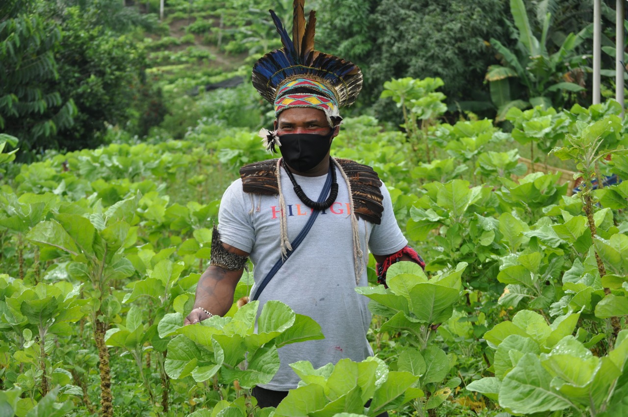 Esse é o exemplo do trabalho realizado na região de Água Vermelha, em Pau Brasil, habitada pela tribo Pataxó Hã Hã Hãe, que pertence à Aldeia Caramuru Catarina Paraguassu, onde foi implantado o Sistema Agroflorestal (SAF), caracterizado pela forma de plantio em meio à Mata Atlântica, com foco na produção de cacau. Atualmente, a produção é em média de quatro a seis arrobas de cacau por hectare. A previsão é que, em 2022, a produção dobre e. nos próximos três anos. alcance 50 arrobas por hectare. Cada arroba equivale a quinze quilos de cacau.