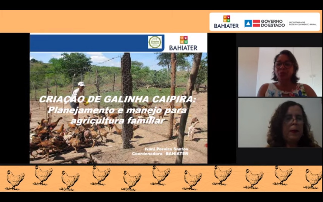 Criação de Galinha Caipira: Planejamento e Manejo para Agricultura Familiar foi o tema do Diálogos de Ater desta quinta-feira (16). No encontro, que contou com a interação do público participante, foi apresentada a criação de galinhas caipiras não só como um reforço na segurança alimentar e nutricional de agricultores e agricultoras familiares, mas também como uma atividade economicamente viável e geradora de renda. O evento foi transmitido pelo canal SDRBahia, da Secretaria Estadual de Desenvolvimento Rural (SDR), no Youtube.