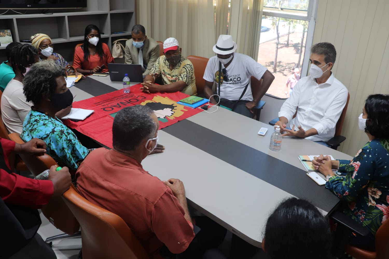 Representantes da Coordenação Nacional de Articulação das Comunidades Negras Rurais Quilombolas (Conaq), daCoordenação Estadual de Articulação das Comunidades Negras Quilombolas (Cenaq) e lideranças de comunidades dos territórios Chapada Diamantina, Extremo Sul, Litoral Norte e Agreste Baiano, Portal do Sertão, Oeste Baiano, Recôncavo e Vale do Jiquiriçá participaram, nesta segunda-feira (20), de reunião no gabinete da Secretaria de Desenvolvimento Rural (SDR). Dentre os encaminhamentos, foi estabelecida a criação de um grupo de trabalho sobre regularização fundiária das áreas quilombolas na Bahia.