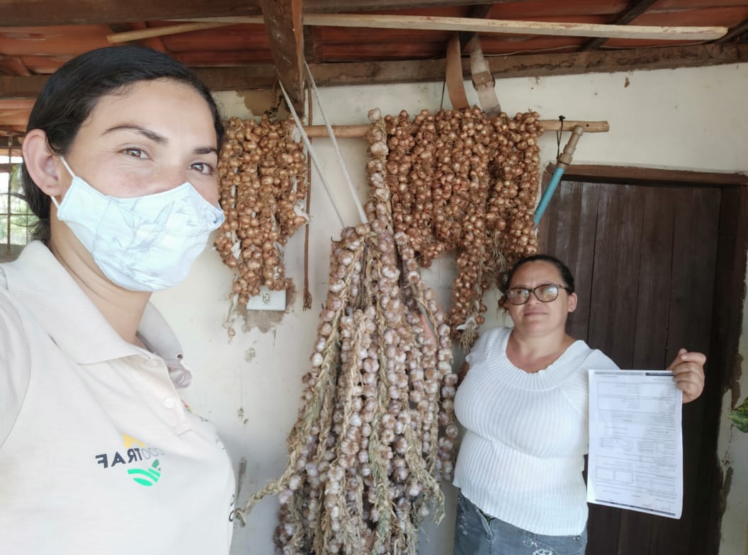A coordenadora do ATER Mulher na Cootraf, Flaviane Leite Araújo, destaca como a agricultora Maria Leonor é atuante nas reuniões do ATER Mulher realizadas na comunidade. Ela salienta que a agricultora vem relatando como essa ação tem contribuído para o seu crescimento, expressando sua alegria em poder estar participando, e em tão pouco tempo ter obtido estes resultados. Flaviane lembra ainda que a propriedade de Maria Leonor possui uma diversidade de culturas e, além de dividir o tempo com o trabalho na produção, ela ainda trabalha com costura.