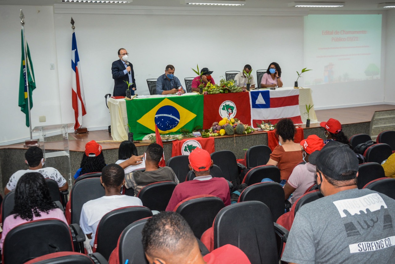 Jeandro Ribeiro, chefe de gabinete da SDR, participou do debate acerca do edital, que está em processo de construção e ponderou que “o Estado enxerga o potencial produtivo que há nos assentamentos de reforma agrária, uma produção de alimentos saudáveis, sem agrotóxico, com princípios agroecológicos. É por isso que a Bahia inova com um edital específico para esse público”.