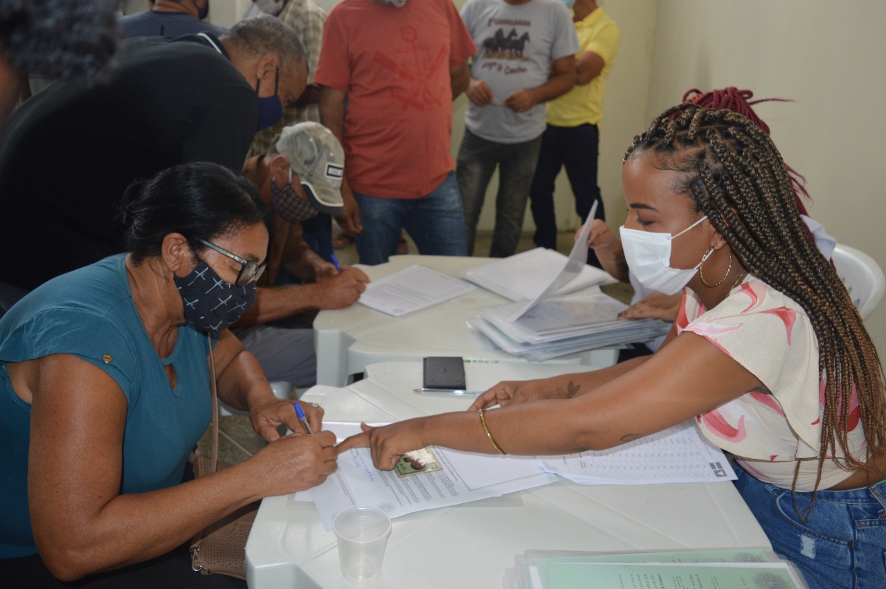Nessa quinta-feira (21), agricultores familiares dos municípios de Lapão e São Gabriel foram beneficiados com 119 títulos de terra já registrados em cartório.