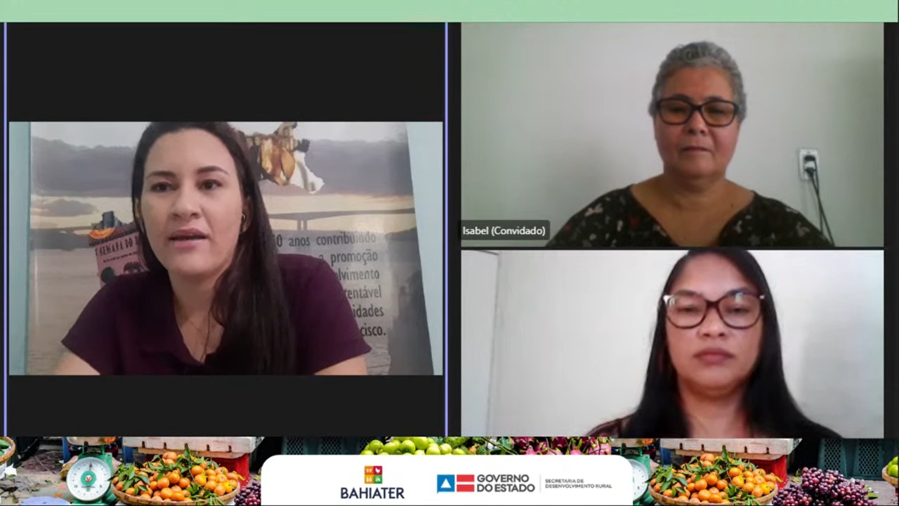 A Feira Agroecológica Camponesa de Baianópolis, como experiência exitosa de assistência técnica e extensão rural (Ater), foi apresentada no encontro do Diálogos de Ater desta quinta-feira (07), com transmissão ao vivo, pelo canal da Secretaria de Desenvolvimento Rural (SDR), SDRBahia, no Youtube. O evento contou com a participação de Isabel Souza, assessora pedagógica da Fundifran e de Silvana Anjos, técnica de Campo da Fundifran.