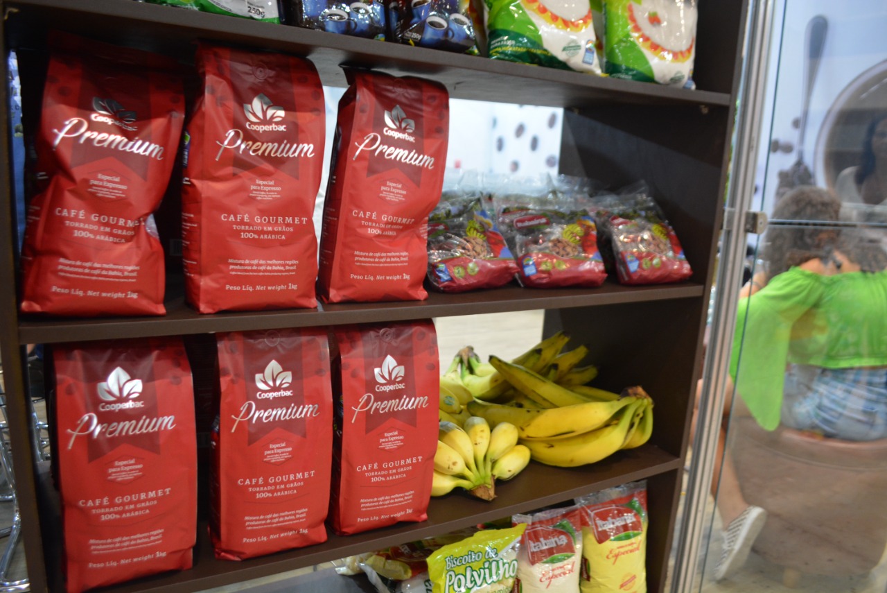 Em um estande conceito com a temática sobre café, Cafés da Bahia, sete organizações produtivas apoiadas pelo Governo do Estado, por meio do projeto Bahia Produtiva, promovem o café da agricultura familiar da Cooperativa de Cafés Especiais e Agropecuária de Piatã (Coopiatã) e da Cooperativa Mista dos Cafeicultores deBarradoChoça(Cooperbac).