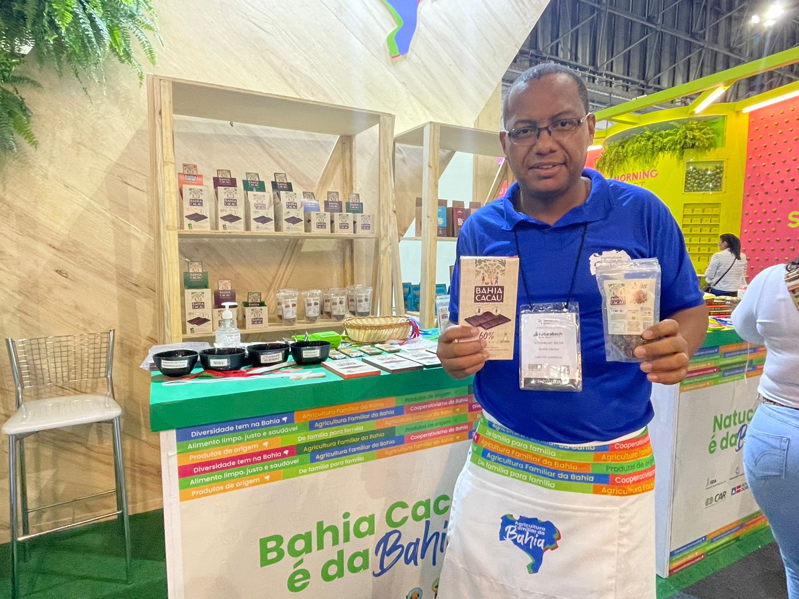 Bahia CacauJá a Cooperativa da Agricultura Familiar e Economia Solidária da Bacia do Rio Salgado e Adjacências (Coopfesba), do município de Ibicaraí, levou para a capital paulista os produtos da primeira fábrica de chocolate da agricultura familiar da Bahia.
