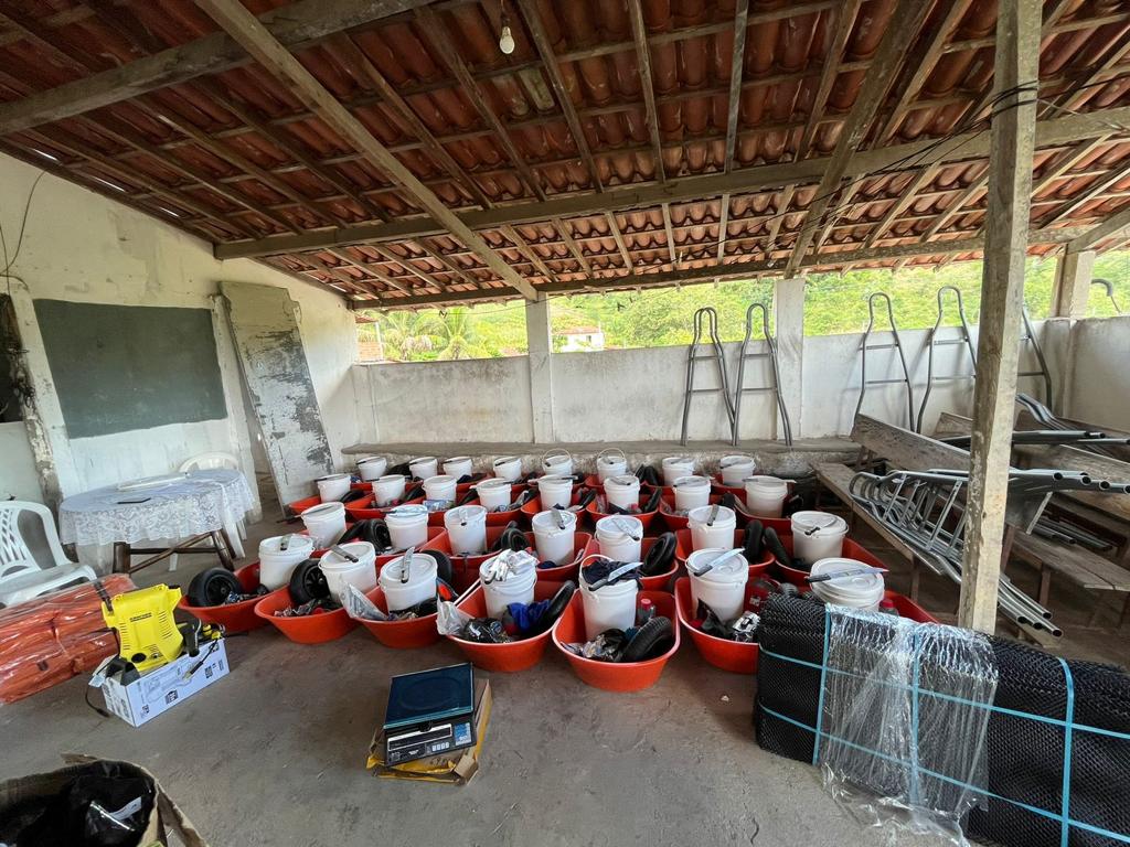 Entre os equipamentos já entregues estão luvas, botas, camisas de proteção, balança, carrinho de mão para carregar as ostras, travesseiro para o cultivo e bancadas de criação.