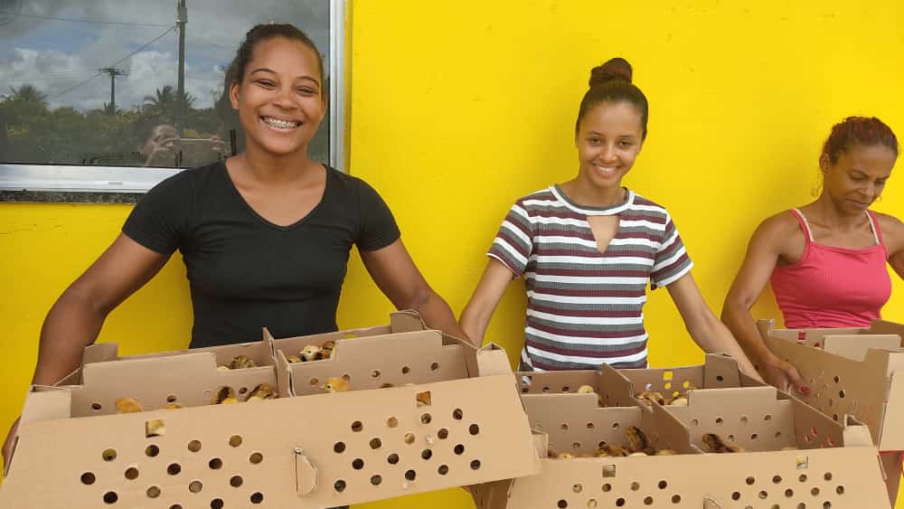 Agricultores e agricultoras familiares da Associação dos Moradores e Agricultores da comunidade da Chapada, no município de Araçás, território Litoral Norte e Agreste Baiano, foram contemplados com 1.100 pintos para o fortalecimento da avicultura na comunidade quilombola.