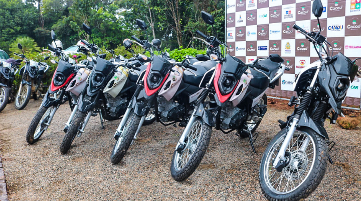 “Um investimento grande do governo do Estado. São mais de R$ 5,7 milhões investidos em contratação de técnicos, calcário, análise de solos, combustível, aluguel de carros, gesso, mudas, tudo para aumentar ainda mais a produção do cacau, a sua qualidade, a conservação desse bioma tão importante que é a Mata Atlântica, a entrega das motos e tablets tão importantes para uma Ater de qualidade, uma extensão rural que liberte, que emancipe os agricultores e agricultoras familiares em todos os territórios da Bahia", completa o Superintendente da Bahiater, Lanns Almeida.
