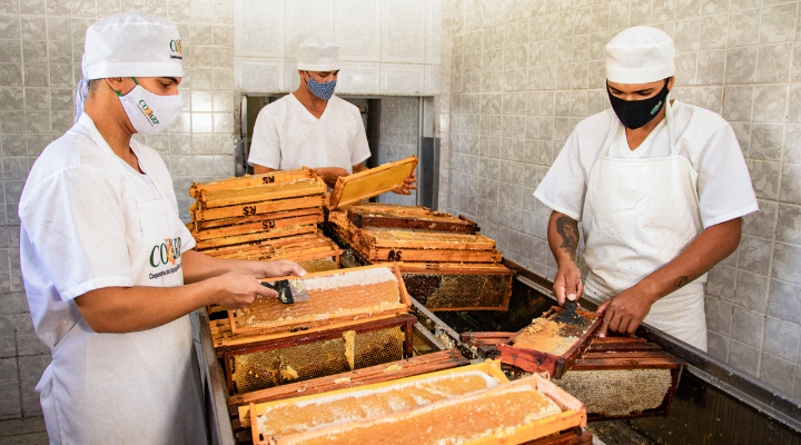 “Hoje a cooperativa conta com 270 cooperados, uma produção anual de mel de 600 toneladas e faz exportação indireta. Com a chegada dos investimentos do Governo do Estado, conseguimos melhorar nossas estruturas, a capacidade de produção e a apresentação e qualidade dos produtos”, conta o diretor.