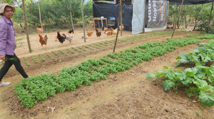 A agricultora Maria Vanda Alves conta o que mudou na sua vida após o projeto. “A minha vida mudou muito. Estou produzindo hortaliças e vendo toda a minha produção, tanto para o PNAE quanto de porta em porta. Aprendi o manejo e o plantio no tempo correto e hoje consigo, aproximadamente, R$ 1.200,00 por mês vendendo os produtos. A produção de ovos aumentou e o peso dos frangos também”, celebra.
