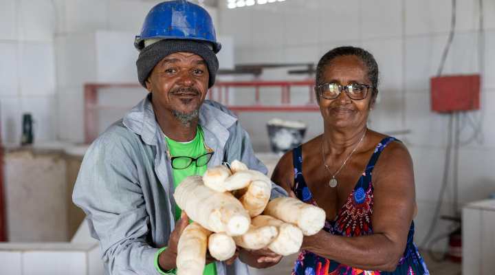 Preta destaca ainda outros benefícios trazidos pela unidade de processamento de mandioca. "Produzimos goma, beiju e massa puba, além de bolo, broa e farinha de tapioca. Consumo esses produtos, distribuo entre os vizinhos e vendo em outros assentamentos. Além disso, aproveitamos a raspa da mandioca para fazer esterco, adubo e ração”.