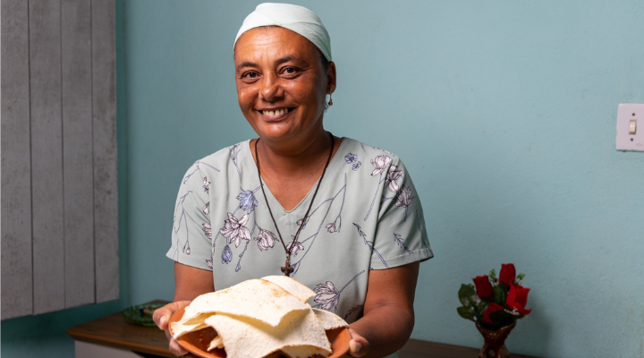 Nilda Menezes Souza de Jesus, outra agricultora beneficiada, destacou a melhora em sua renda: "Antes, eu só fazia bolo para minha família. Agora, vendo para o PNAE e recebo encomendas na região, o que já melhorou minha renda. Produzimos bastante aipim e, com os insumos, melhoramos nossa produção. As barracas também ajudaram muito nas vendas na feira da comunidade.