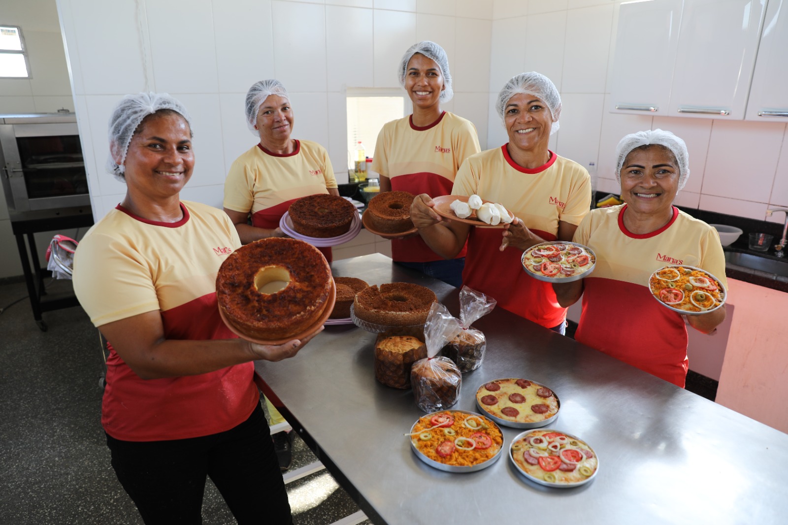 O Grupo Produtivo Maria’s, da Associação Dona Maria, produz e comercializa, diariamente, das 6h às 19h, no quiosque que foi construído por elas, como contrapartida do projeto, às margens da BR 110, bolos, coxinhas, sucos, pães, pizzas, salgados, caldos, café e, agora que o fim do ano se aproxima, também o panetone. O grupo ainda trabalha a partir de encomendas feitas para eventos, no município de Olindina.