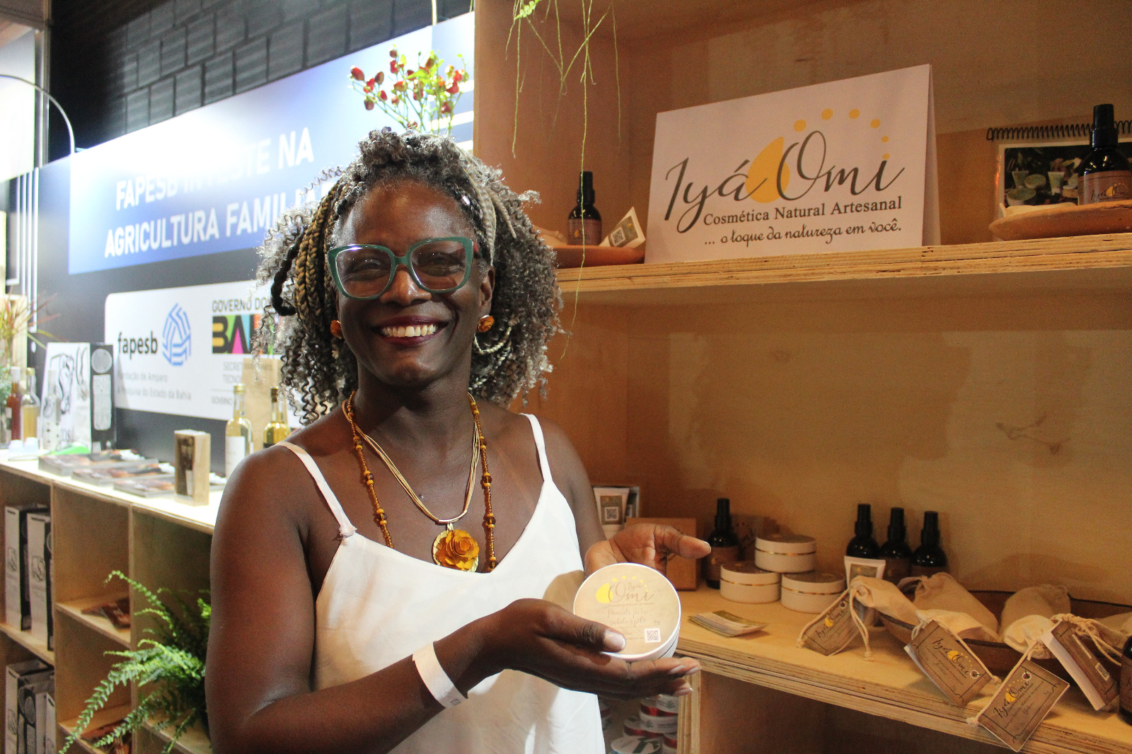 Produtos de comunidades quilombolas também estão sendo comercializados no estande da agricultura familiar. A CEO da Iyá Omin Cosmética Natural, Sueli Conceição, comentou a oportunidade de vender os produtos fitocosméticos cultivados com plantas medicinais de povos e comunidades tradicionais. “Muito feliz de estar aqui em um grande evento e com produtos que são feitos com matérias-primas cultivadas em espaços de povos e comunidades tradicionais”.