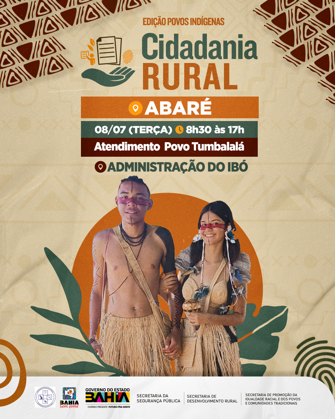 O Cidadania Rural inicia nova etapa com atendimento à comunidades indígenas do interior da Bahia. A iniciativa da Secretaria de Desenvolvimento Rural (SDR) vai acontecer entre os dias 8 e 12 de julho, nos municípios de Abaré e Rodelas, e tem o objetivo de garantir o acesso à documentação básica, promovendo inclusão social, segurança jurídica e fortalecendo a agricultura familiar no estado.