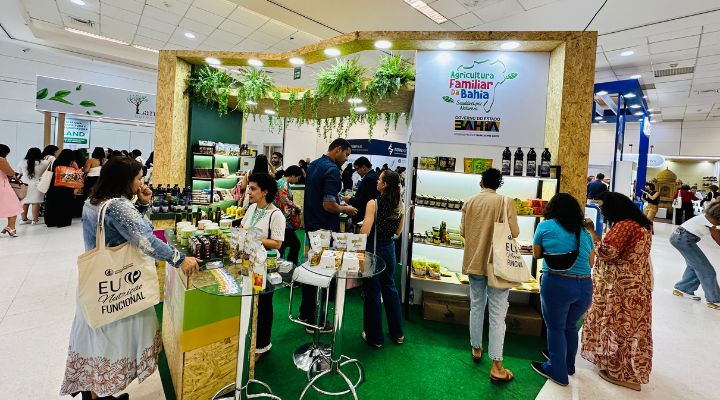 Com o conceito “Agricultura Familiar da Bahia: Saudável por Natureza”, o estande baiano se transformou em uma vitrine de sabores, saberes e diversidade cultural. O público pôde conhecer produtos como o flocão de milho e o recém-lançado Penne Puro Milho da Cooperativa agropecuária Mista Regional de Irecê (Copirecê), o suco de uva da Cooperativa Agroindustrial Vale do Paraíso (Cooperparaíso), as barrinhas de cereais da Cooperativa Agroindustrial de Produtores de Frutas de Itaberaba (Coopaita) e o mix de castanhas da Cooperativa da Cajucultura Familiar do Nordeste da Bahia (Cooperacaju). Além desses, o estande também foi composto por geleias, cervejas artesanais de cajá, de umbu, palmito e licuri in natura, chocolates, cafés, entre outros.